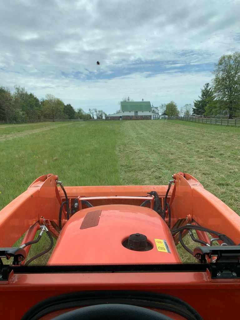 This is Mason and me last weekend mowing the pastures. He joined me at the end of my mowing, and we need to get him new hearing protection that stays on his head, as his plugs kept falling out. I have to say I really get in a zen zone when out in my tractor. I put on my music and just love the smell of fresh cut grass and the view of the surrounding farms. It only takes a couple of hours when I do it, and it’s not more than a few times during the summer but I love it.